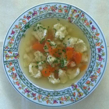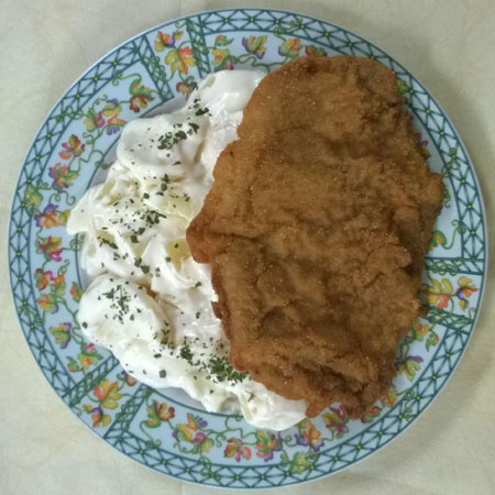 ![]() Grízgaluska leves | ![]() Prágai rántott szelet, Majonézes burgonyasaláta |