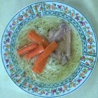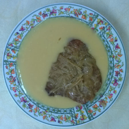 ![]() Sárgaborsó főzelék, hagymás sült tarja | ![]() Csontleves |