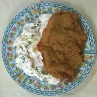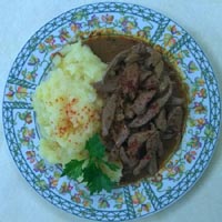 ![]() Sertésszelet Gellért módra, Petrezselymes rizs | ![]() Resztelt sertésmáj tört burgonyával |